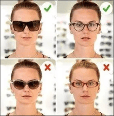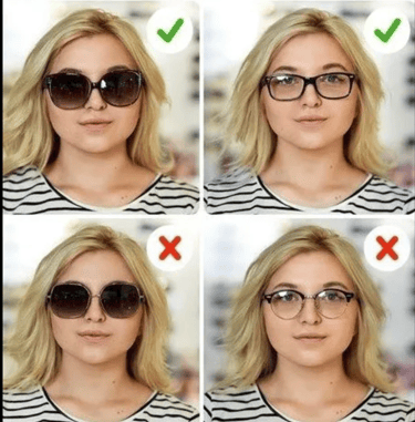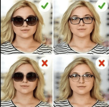 Le visage rond possède des lignes courbes, sans angles et les largeurs et longueur sont dans des proportions identiques. On cherchera à donner de la hauteur avec des montures étroites et anguleuses. Elles peuvent être rectangulaires ou même de forme papillon.